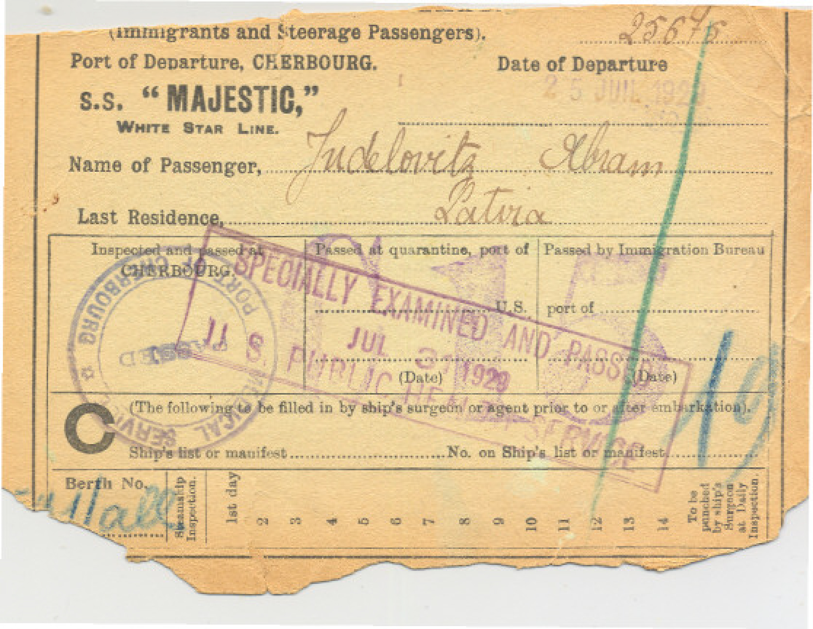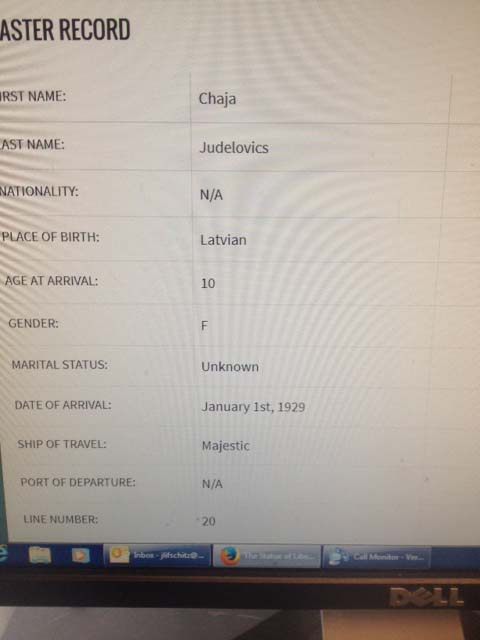 While sitting shiva in New Jersey a cousin told me that he had found papers among my uncle’s (my mother’s brother) effects that shed light on my mother’s arrival from Riga. My grandmother, uncle and mother made the voyage across the Atlantic on a ship called the Majestic. They arrived at Ellis Island on January 1, 1929.