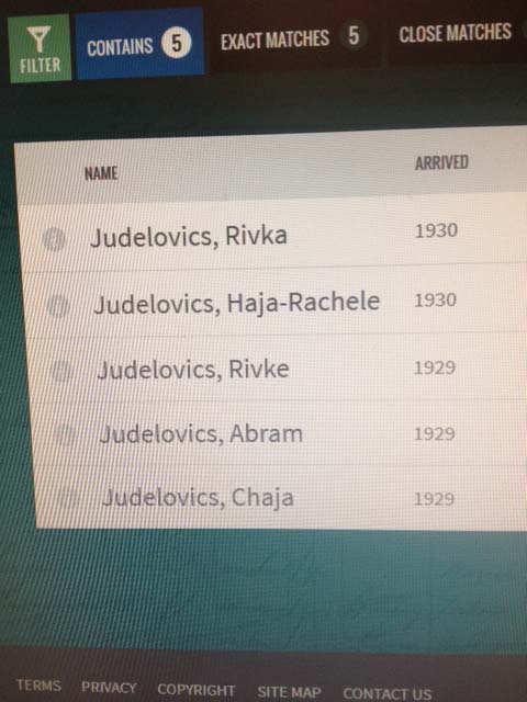 My cousin’s discovery piqued my interest to learn more about my mother’s immigration to this country. After shiva I joined Ancestry.com and did some basic research. I learned that my grandmother was 36 years old on her arrival, my uncle 13 years old and my mother 10. This was quite a revelation as my mother had indicated that she was a very young child on her arrival.